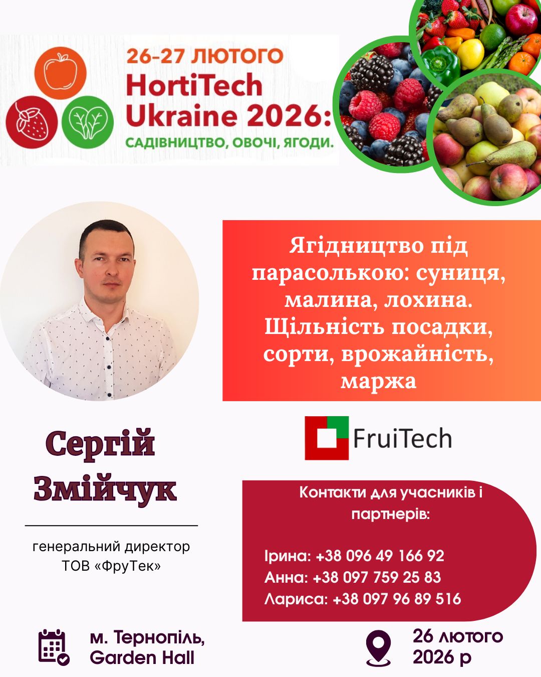 25 – 27 февраля 2026 года ООО ФруТек будет принимать участие в научно-практической конференции T&I Media Group – HortiTech Ukraine 2026 Садоводство. Овощи. Ягоды. От поля и теплицы к рынку – технологии, экспорт, переработка.